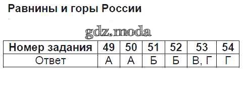 ГДЗ решение к заданию № №49-54 Окружающий мир 4 класс тесты Плешаков А.А. Просвещение 2014 ФГОС бесплатно на гдз.мода!