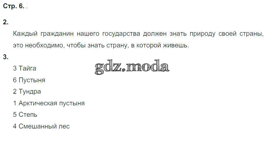 ГДЗ решение к заданию № 6 Окружающий мир 4 класс тетрадь для проверочных работ Виноградова Н.Ф. Вентана-граф 2018 Часть 1, Часть 2 ФГОС бесплатно на гдз.мода!