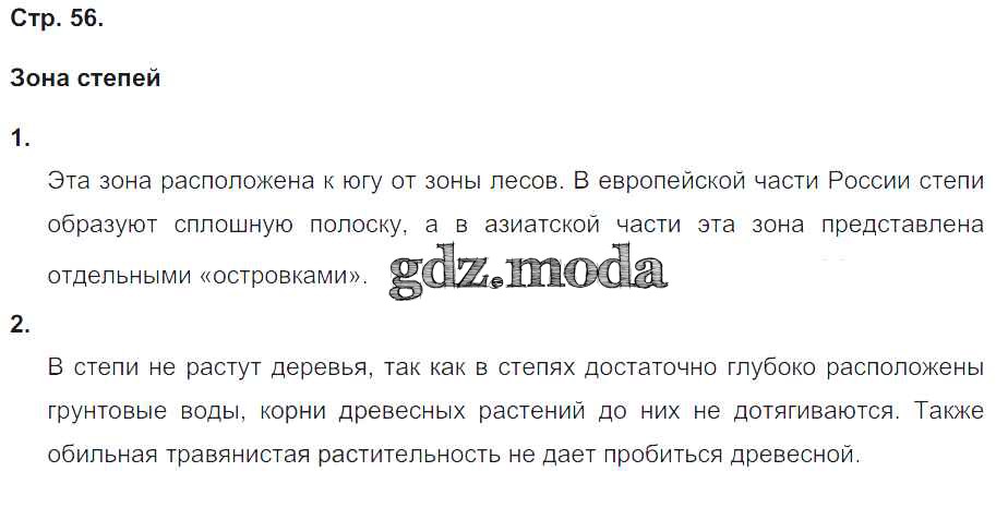 ОТВЕТ на задание № 56 Тетрадь для самостоятельной работы по Окружающему миру 4 класс Чуракова Перспективная начальная школа