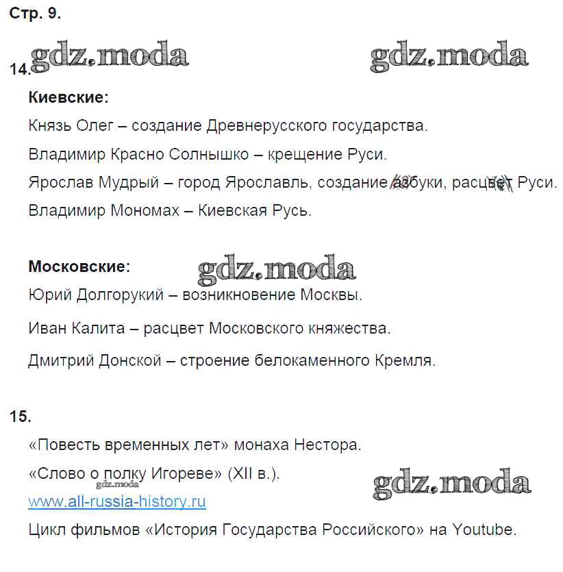 ОТВЕТ на задание № 9 Тетрадь для самостоятельной работы по Окружающему миру 4 класс Федотова Перспективная начальная школа