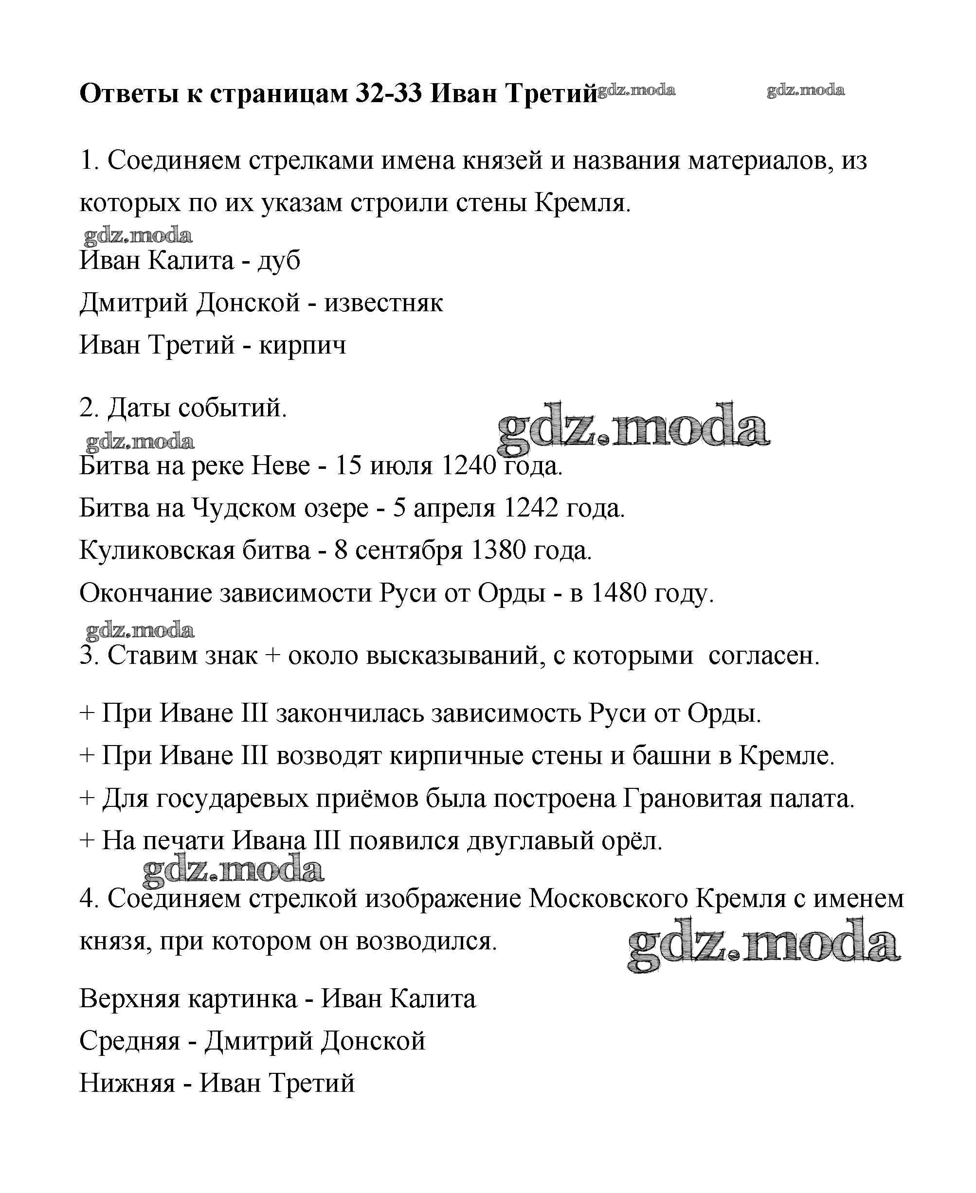 ОТВЕТ на задание № 32 Тетрадь для практических работ по Окружающему миру 4 класс Тихомирова