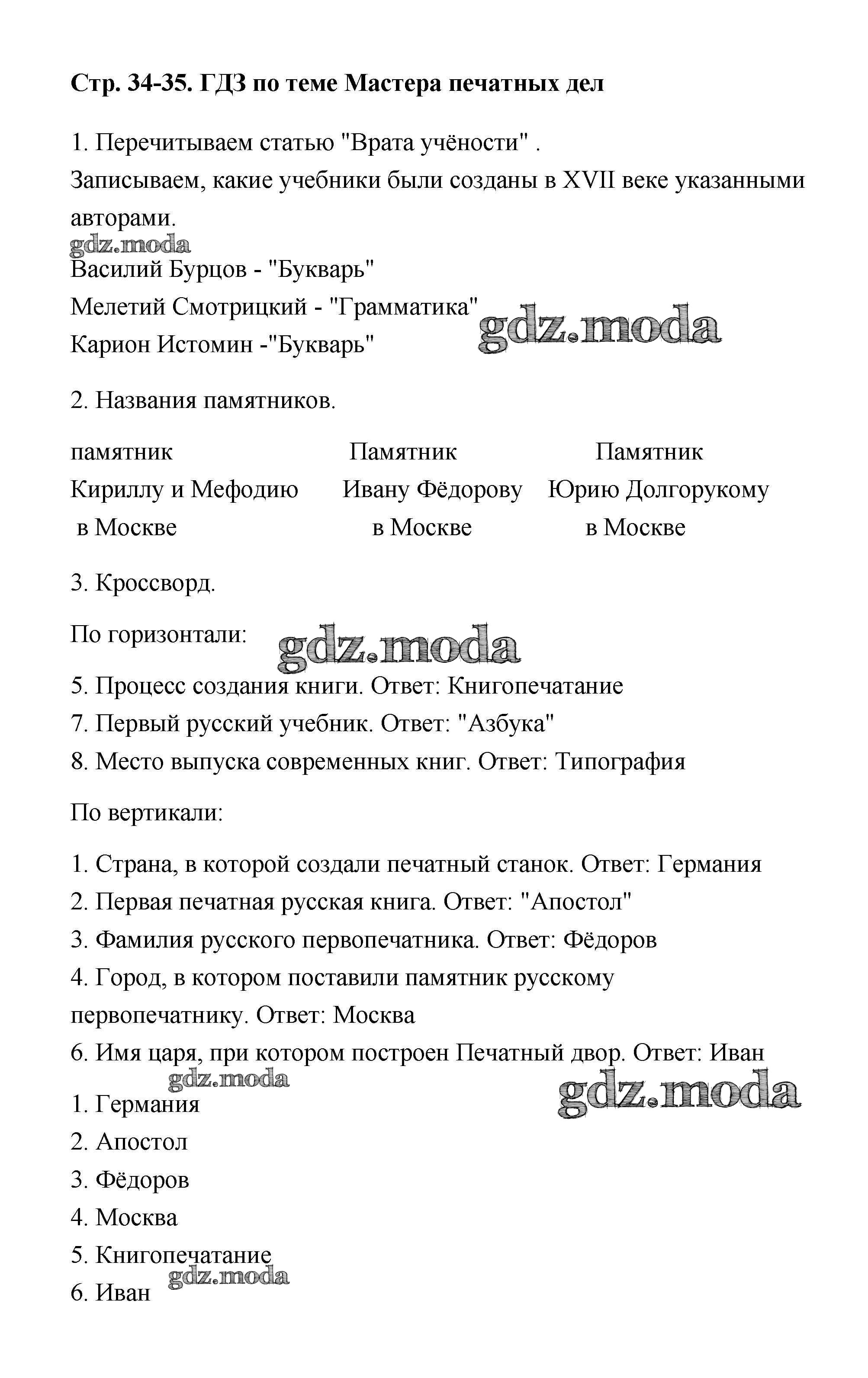 ОТВЕТ на задание № 34 Тетрадь для практических работ по Окружающему миру 4 класс Тихомирова