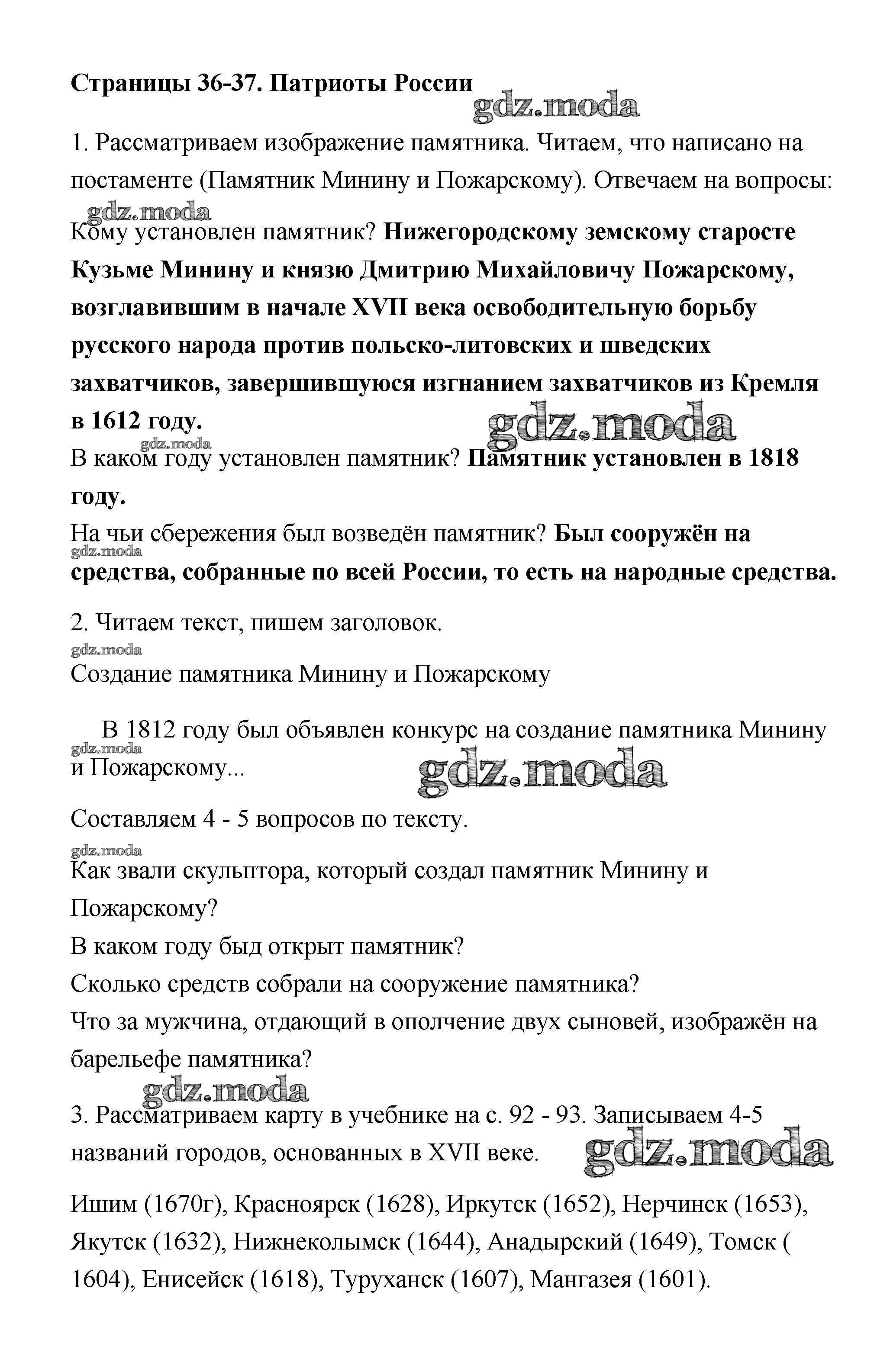 ОТВЕТ на задание № 36 Тетрадь для практических работ по Окружающему миру 4 класс Тихомирова