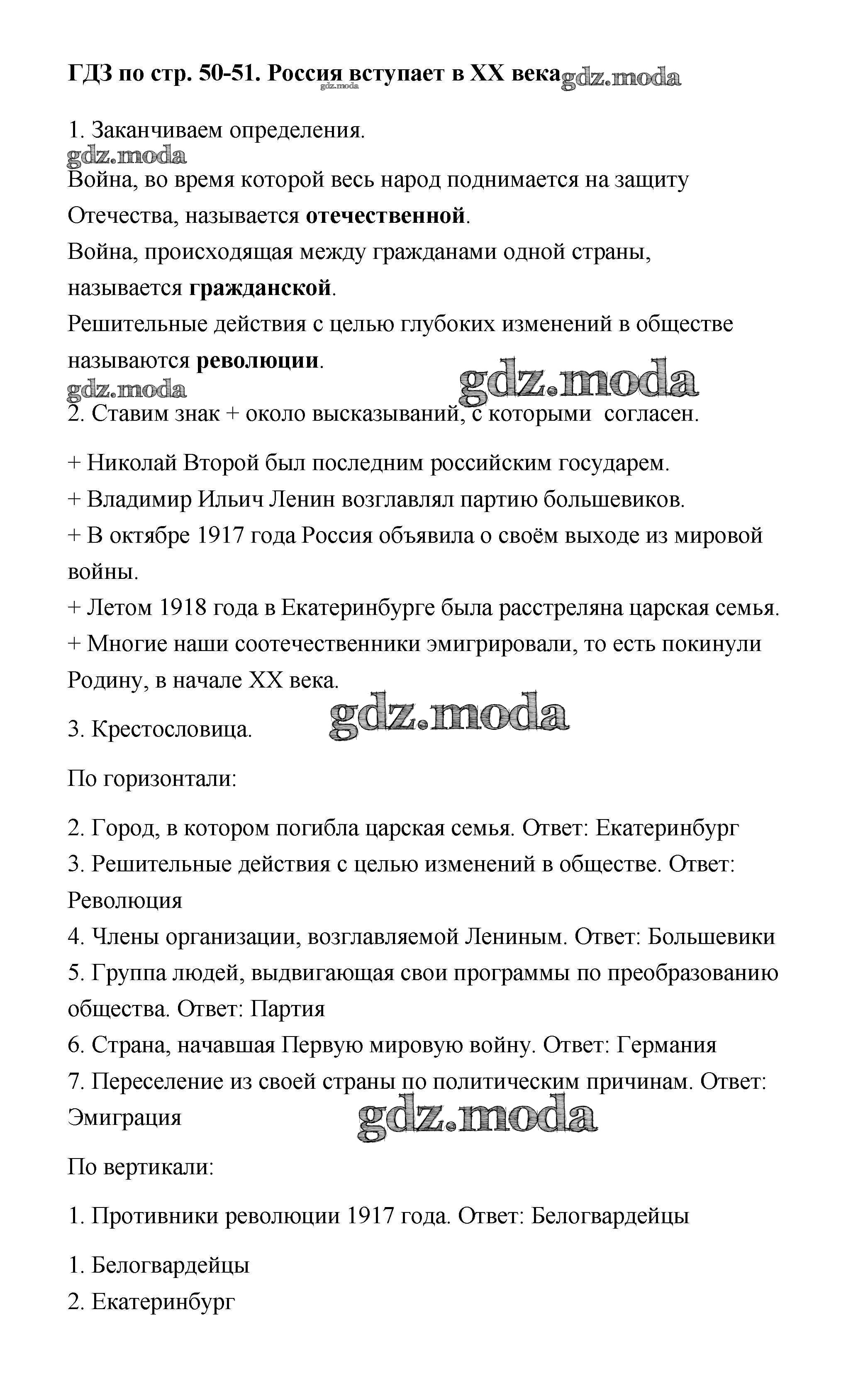 ОТВЕТ на задание № 50 Тетрадь для практических работ по Окружающему миру 4 класс Тихомирова