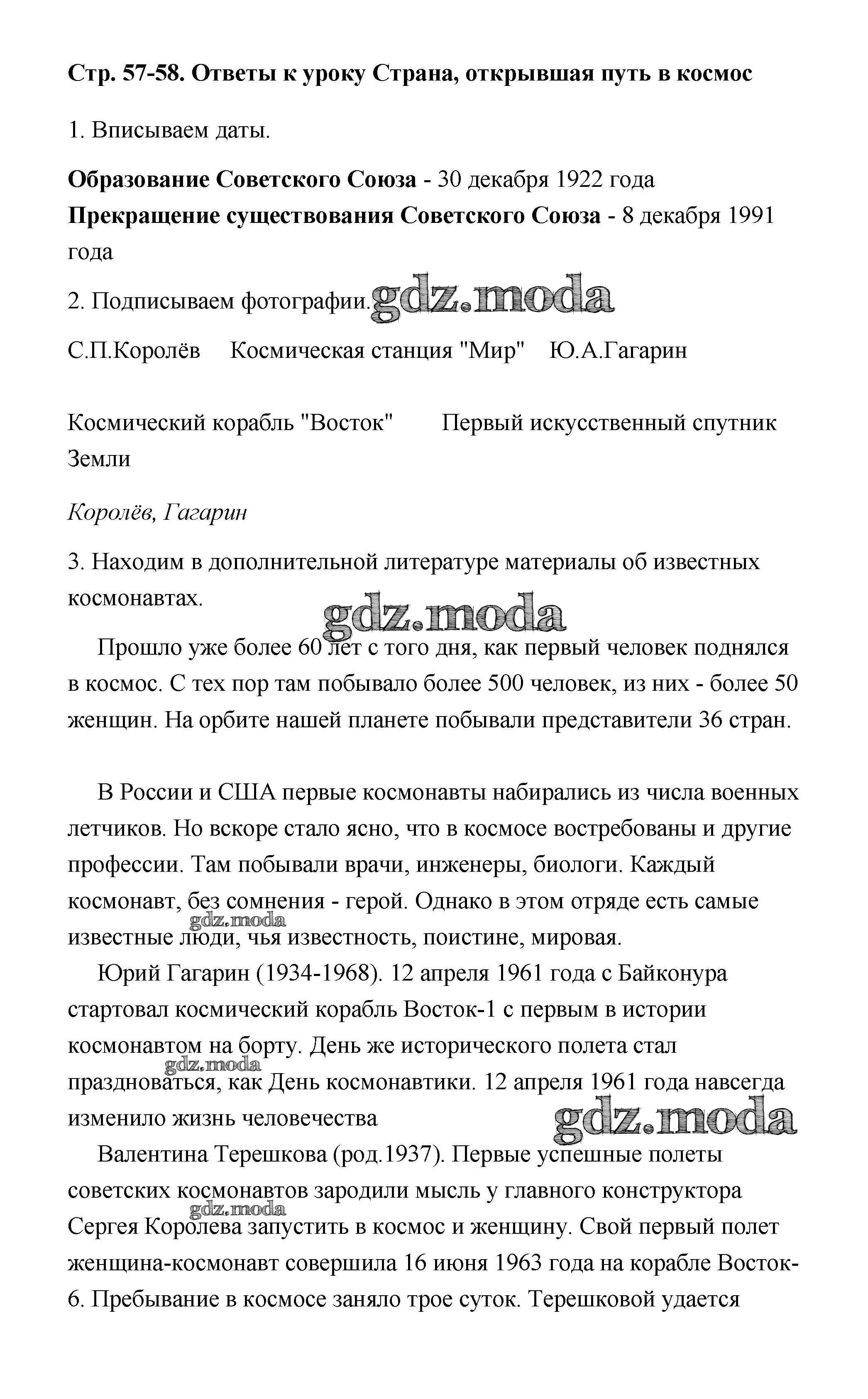 ОТВЕТ на задание № 57 Тетрадь для практических работ по Окружающему миру 4 класс Тихомирова