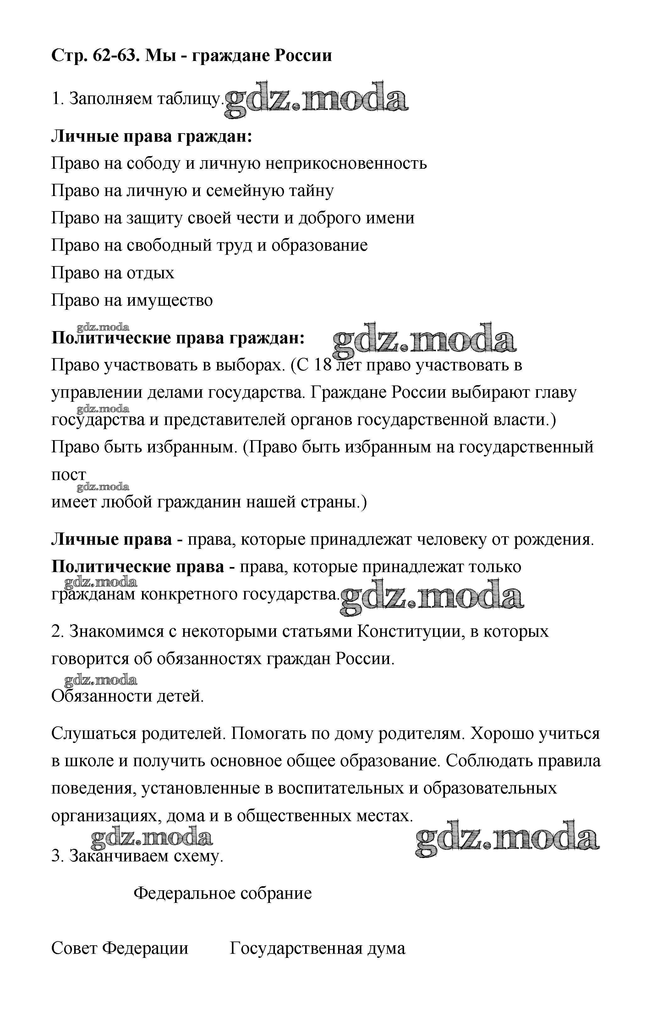 ГДЗ решение к заданию № 62 Окружающий мир 4 класс тетрадь для практических работ Тихомирова Экзамен 2017 бесплатно на гдз.мода!