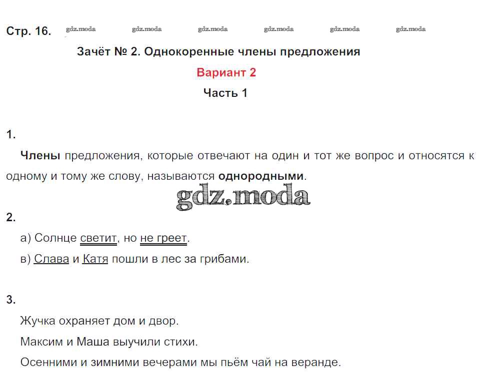 ГДЗ решение к заданию № 16 Русский язык 4 класс Зачетные работы Алимпиева М.Н. Экзамен 2016 ФГОС бесплатно на гдз.мода!