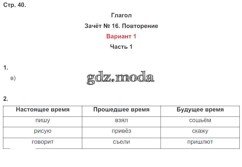 ГДЗ решение к заданию № 40 Русский язык 4 класс Зачетные работы Алимпиева М.Н. Экзамен 2016 ФГОС бесплатно на гдз.мода!