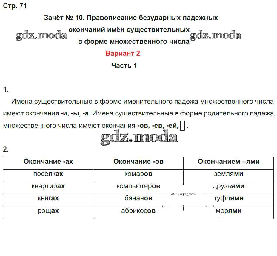 ГДЗ решение к заданию № 71 Русский язык 4 класс Зачетные работы Алимпиева М.Н. Экзамен 2016 ФГОС бесплатно на гдз.мода!