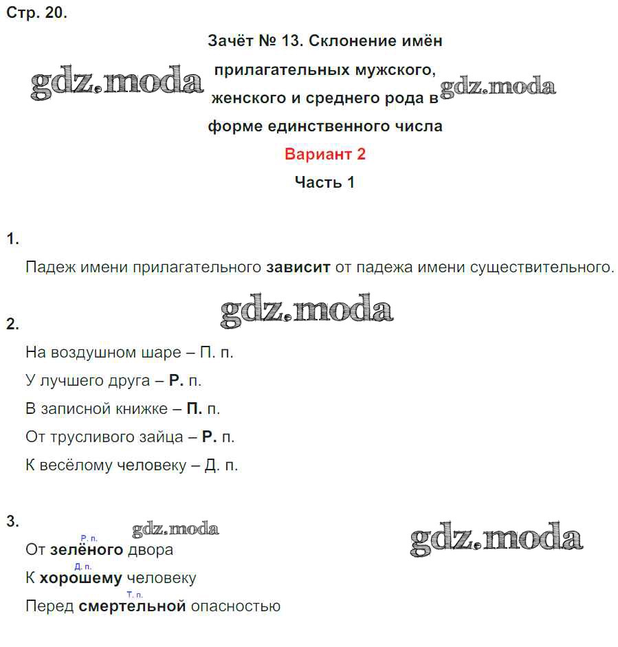 ГДЗ решение к заданию № 20 Русский язык 4 класс Зачетные работы Алимпиева М.Н. Экзамен 2016 ФГОС бесплатно на гдз.мода!