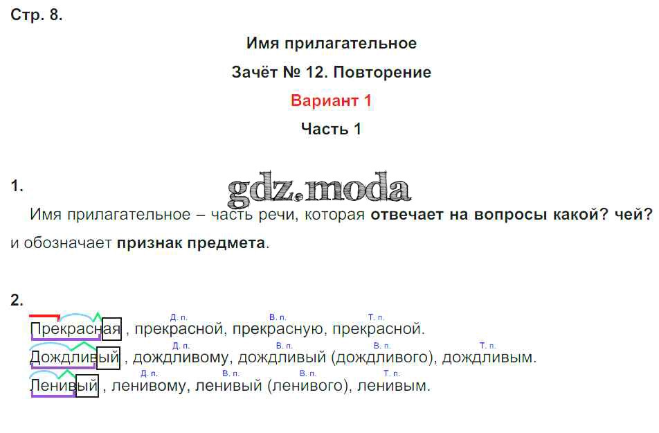 ГДЗ решение к заданию № 8 Русский язык 4 класс Зачетные работы Алимпиева М.Н. Экзамен 2016 ФГОС бесплатно на гдз.мода!