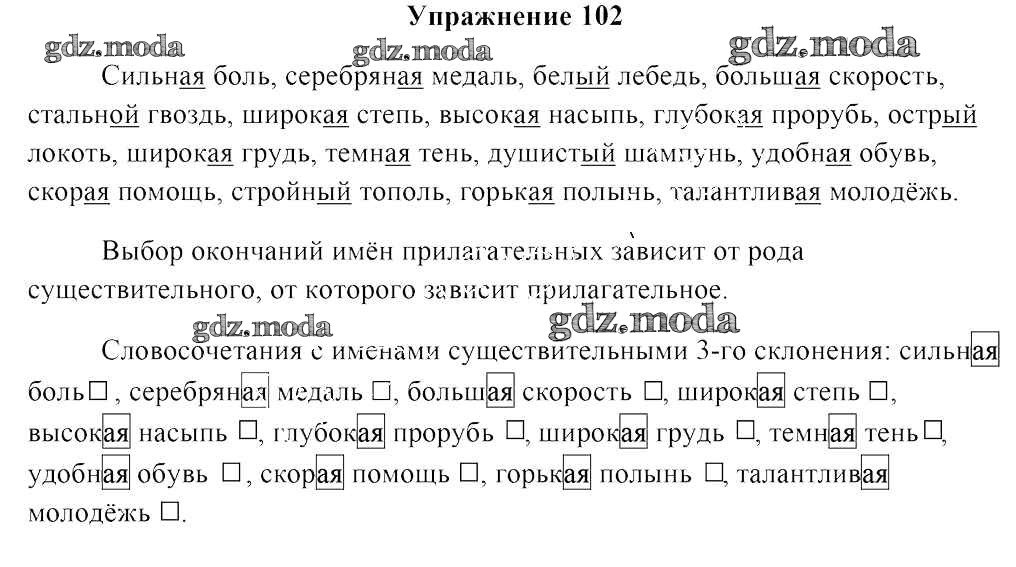 ОТВЕТ на задание № 102 Учебник по Русскому языку 4 класс Антипова