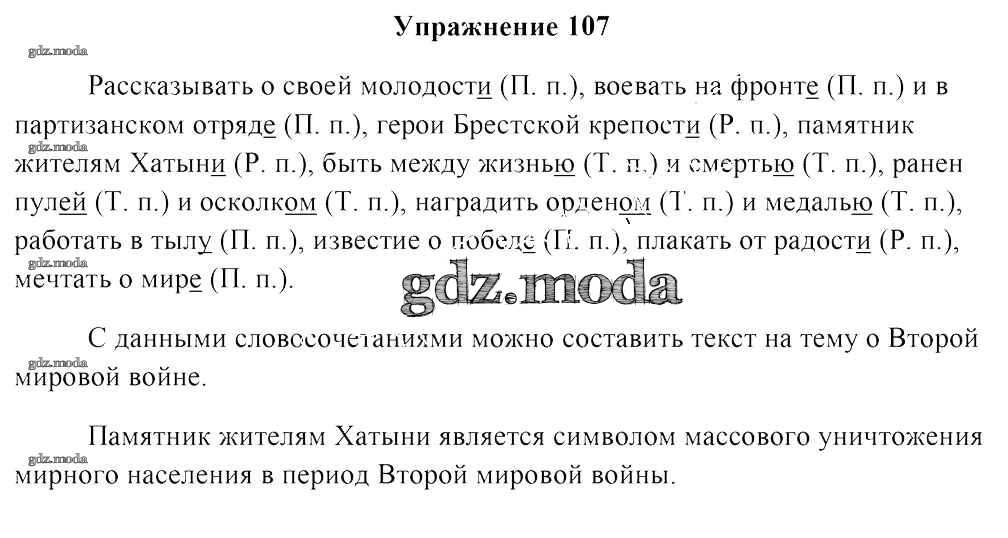 ОТВЕТ на задание № 107 Учебник по Русскому языку 4 класс Антипова