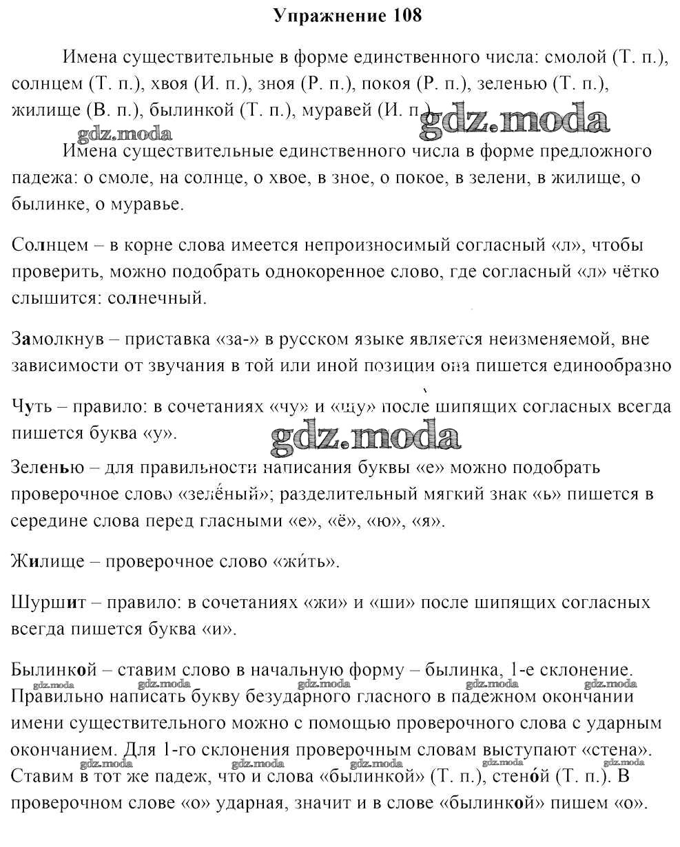 ОТВЕТ на задание № 108 Учебник по Русскому языку 4 класс Антипова