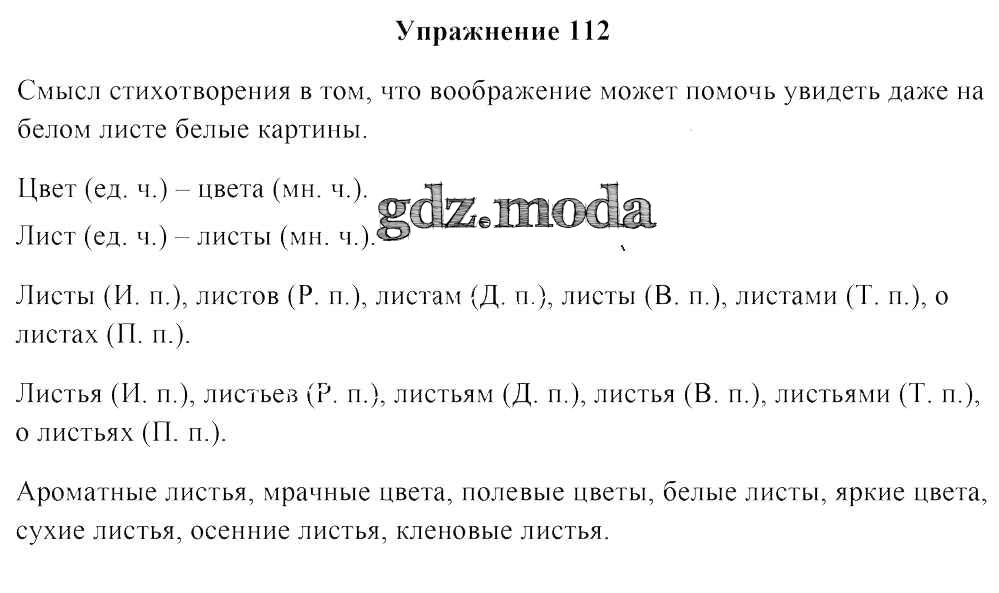 ОТВЕТ на задание № 112 Учебник по Русскому языку 4 класс Антипова