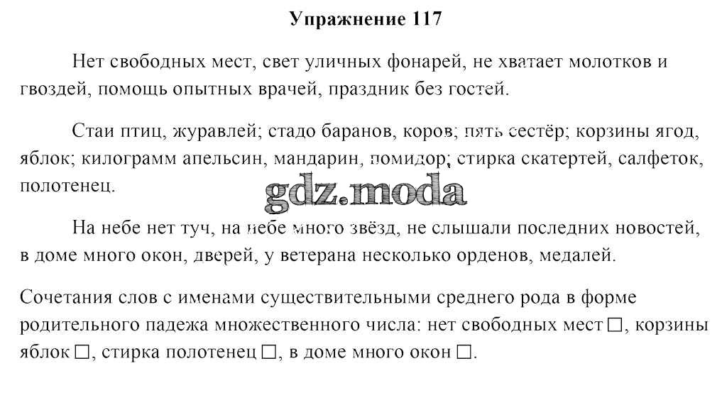ОТВЕТ на задание № 117 Учебник по Русскому языку 4 класс Антипова