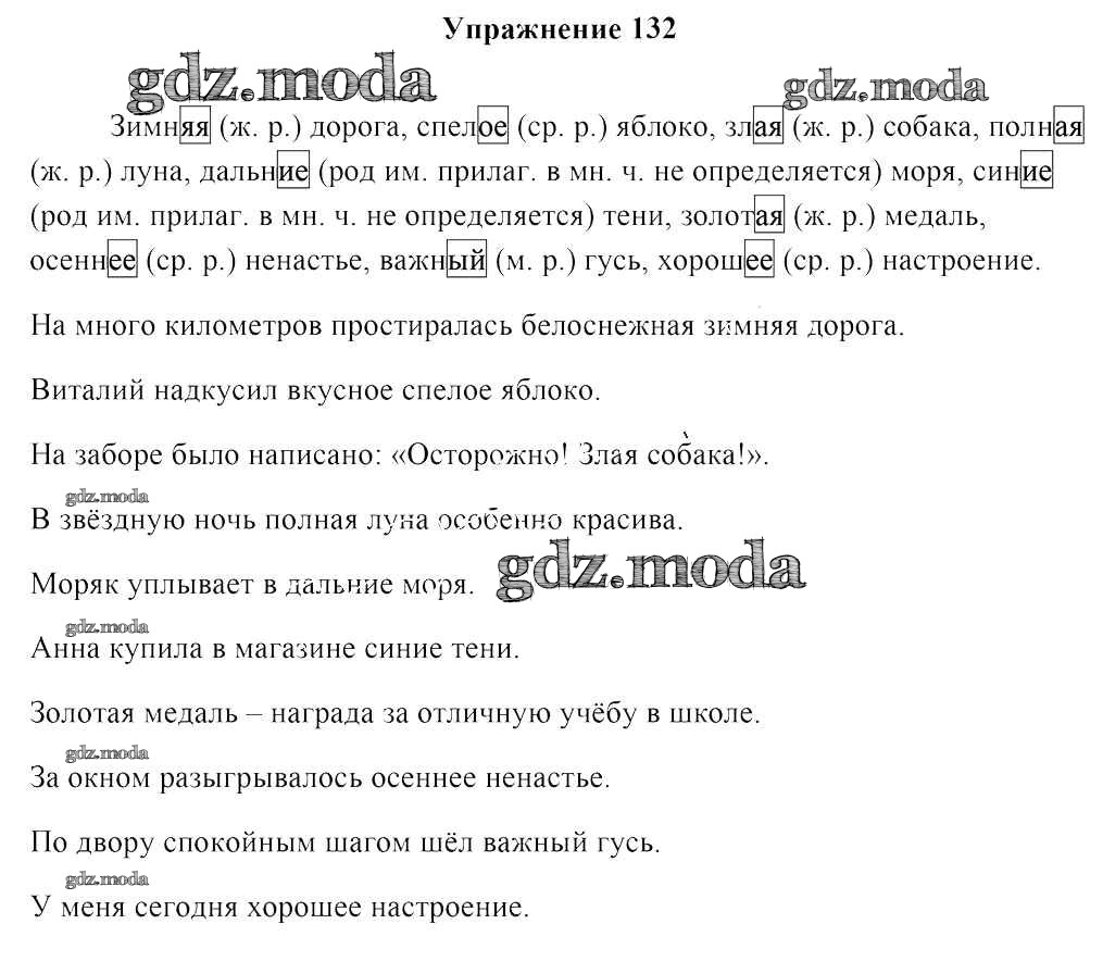 ОТВЕТ на задание № 132 Учебник по Русскому языку 4 класс Антипова