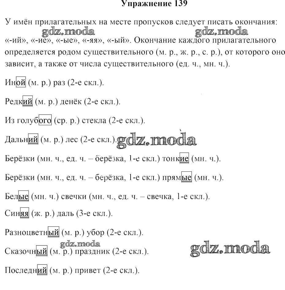 ОТВЕТ на задание № 139 Учебник по Русскому языку 4 класс Антипова
