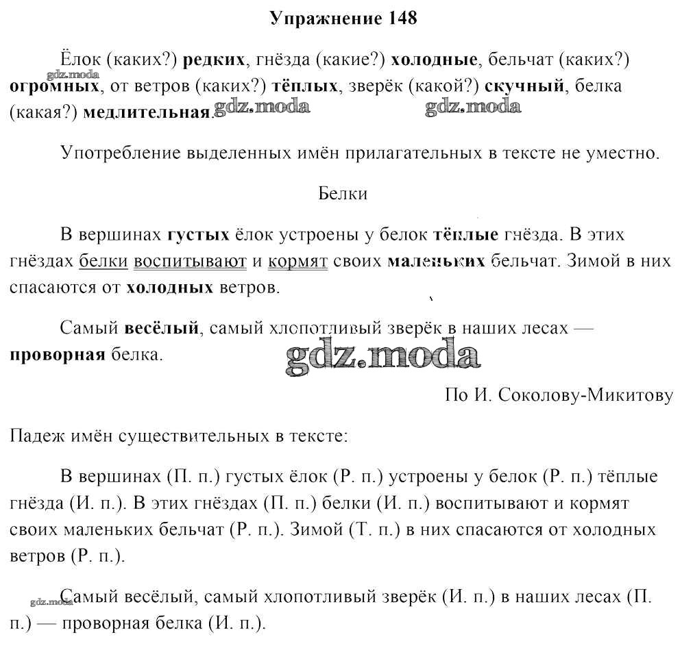 ОТВЕТ на задание № 148 Учебник по Русскому языку 4 класс Антипова