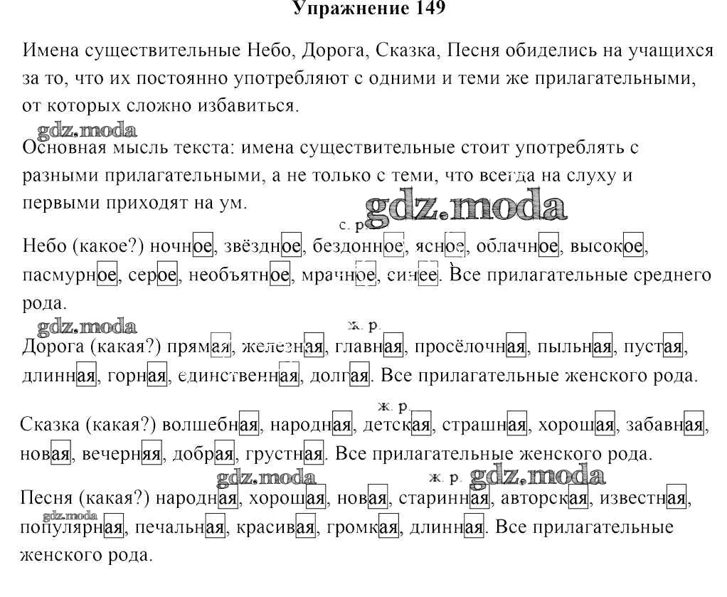 ОТВЕТ на задание № 149 Учебник по Русскому языку 4 класс Антипова