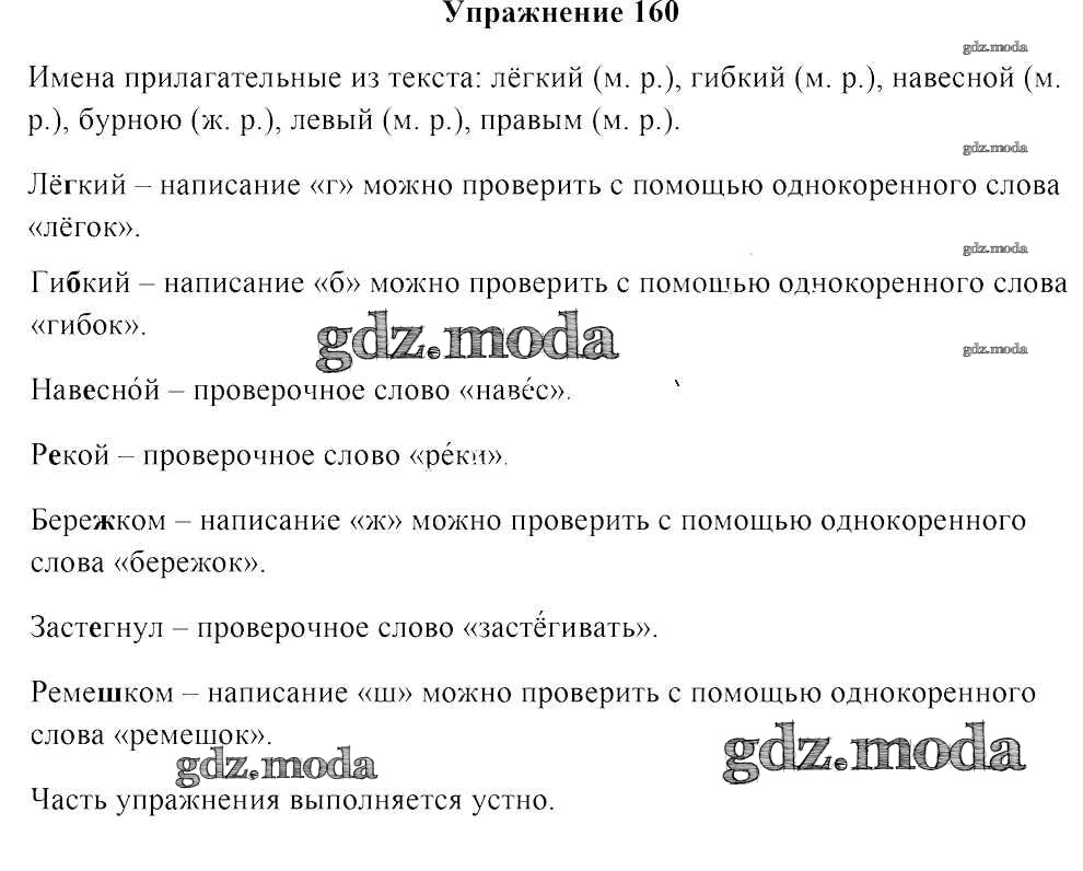 ОТВЕТ на задание № 160 Учебник по Русскому языку 4 класс Антипова