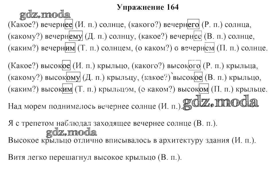ОТВЕТ на задание № 164 Учебник по Русскому языку 4 класс Антипова