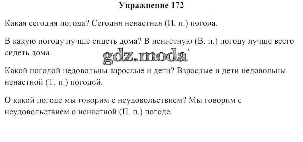 ОТВЕТ на задание № 172 Учебник по Русскому языку 4 класс Антипова