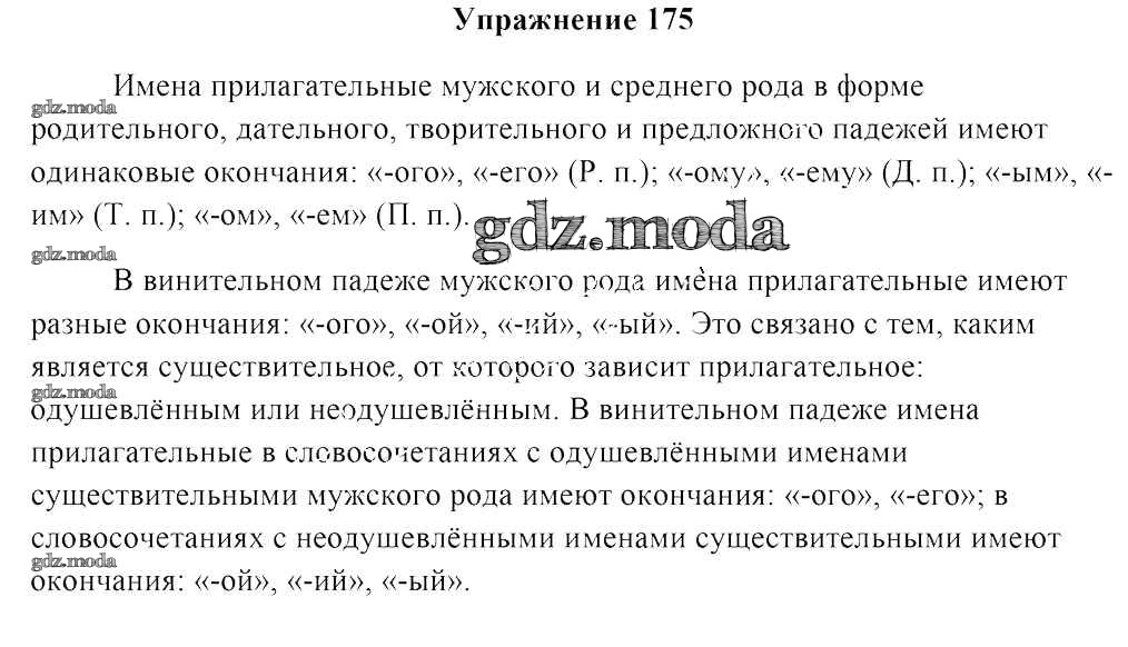 ОТВЕТ на задание № 175 Учебник по Русскому языку 4 класс Антипова