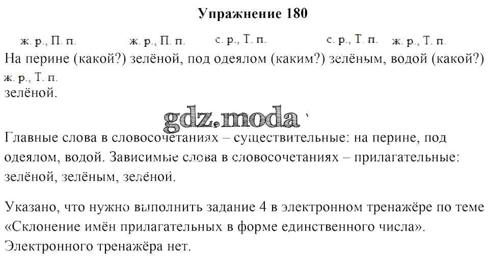 ОТВЕТ на задание № 180 Учебник по Русскому языку 4 класс Антипова