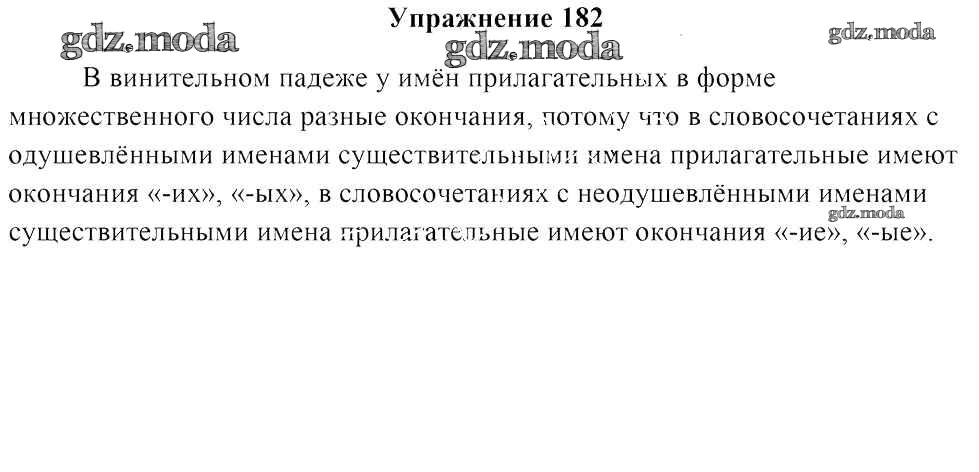 ОТВЕТ на задание № 182 Учебник по Русскому языку 4 класс Антипова