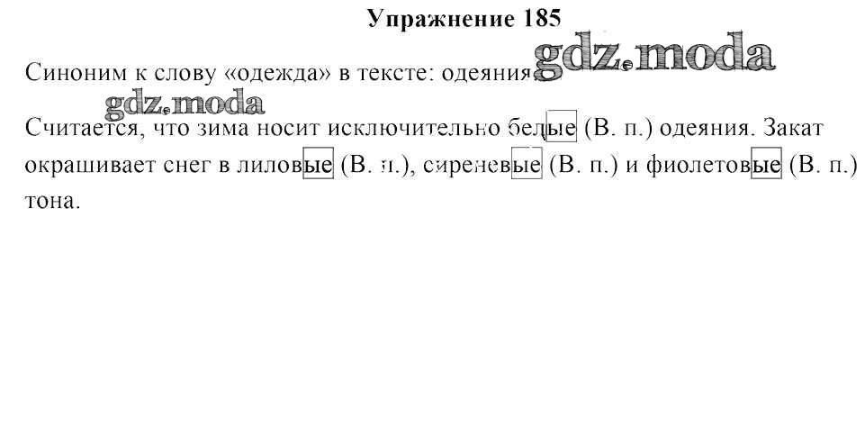 ОТВЕТ на задание № 185 Учебник по Русскому языку 4 класс Антипова