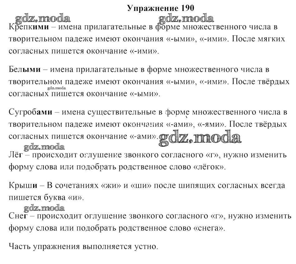 ОТВЕТ на задание № 190 Учебник по Русскому языку 4 класс Антипова