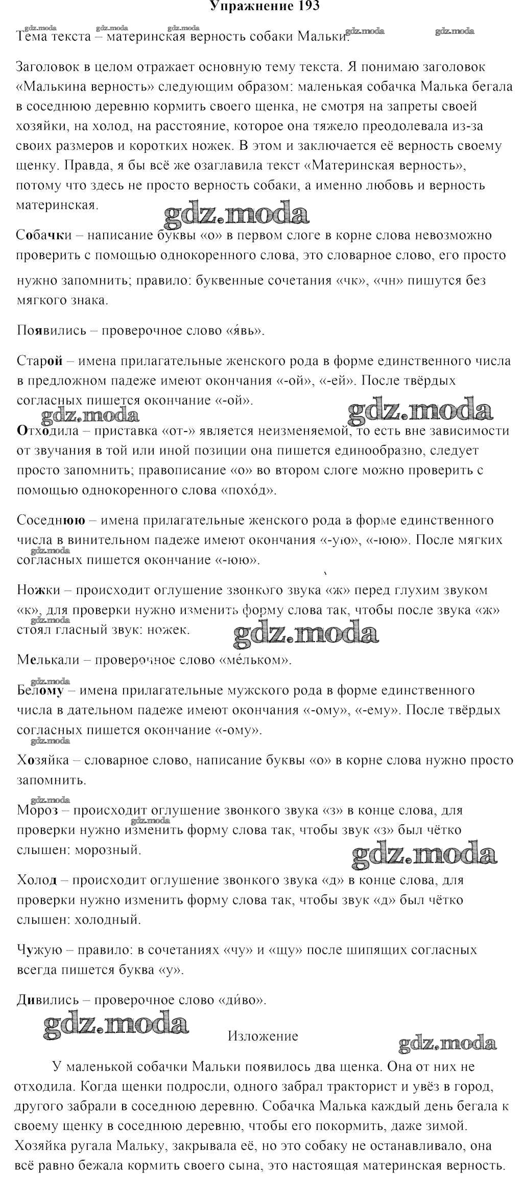 ОТВЕТ на задание № 193 Учебник по Русскому языку 4 класс Антипова