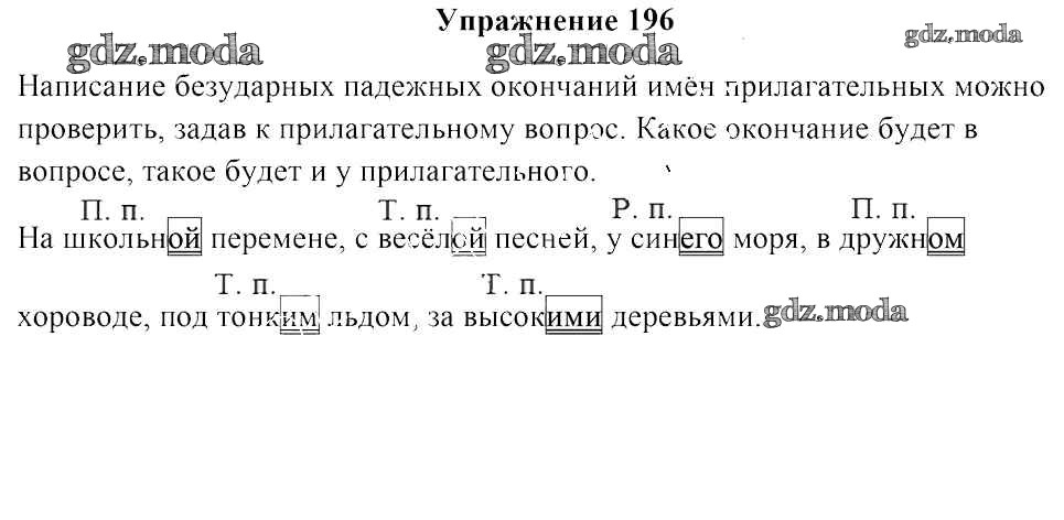 ОТВЕТ на задание № 196 Учебник по Русскому языку 4 класс Антипова