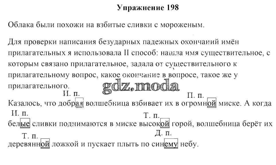 ОТВЕТ на задание № 198 Учебник по Русскому языку 4 класс Антипова