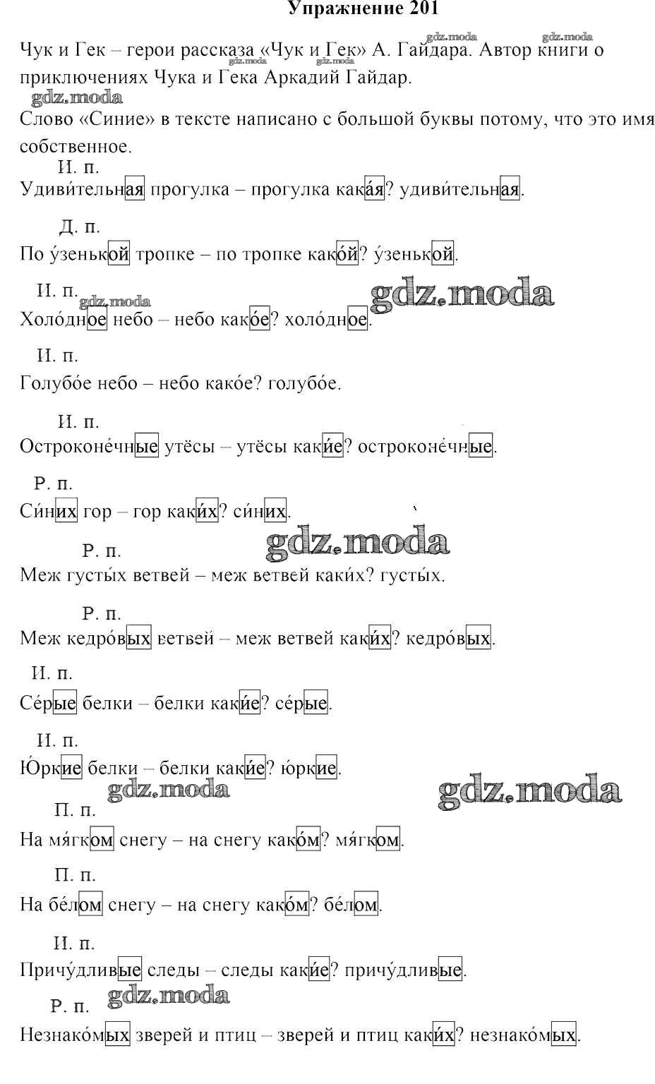ОТВЕТ на задание № 201 Учебник по Русскому языку 4 класс Антипова