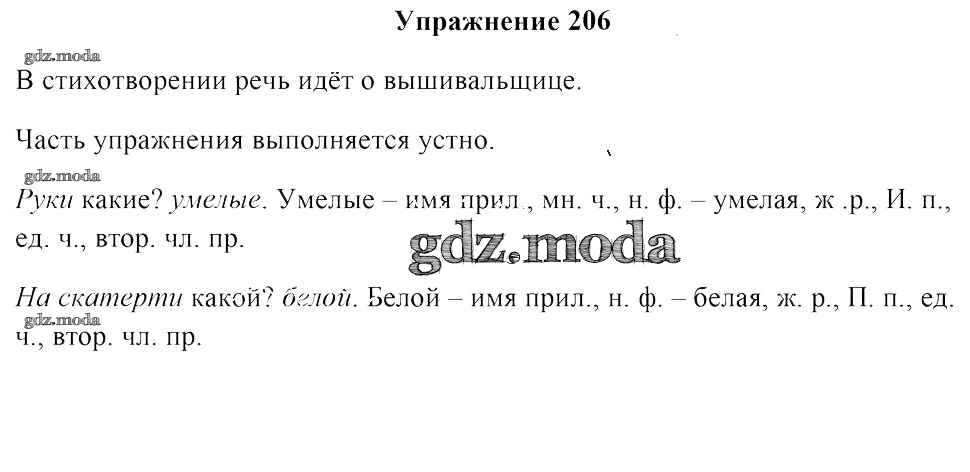 ОТВЕТ на задание № 206 Учебник по Русскому языку 4 класс Антипова
