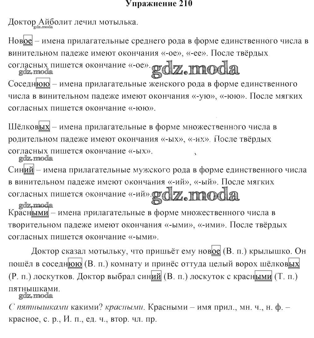 ОТВЕТ на задание № 210 Учебник по Русскому языку 4 класс Антипова