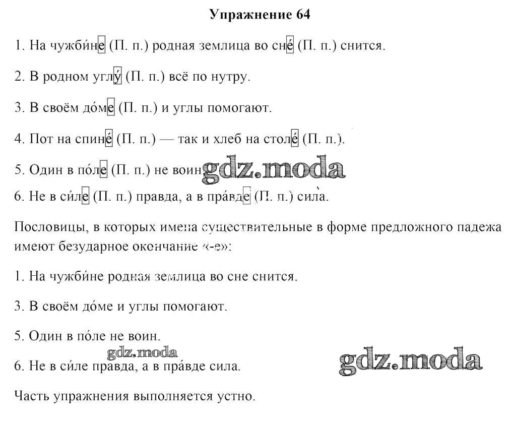 ОТВЕТ на задание № 64 Учебник по Русскому языку 4 класс Антипова