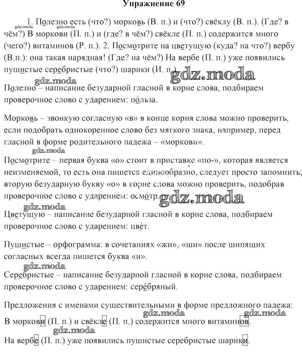 ОТВЕТ на задание № 69 Учебник по Русскому языку 4 класс Антипова
