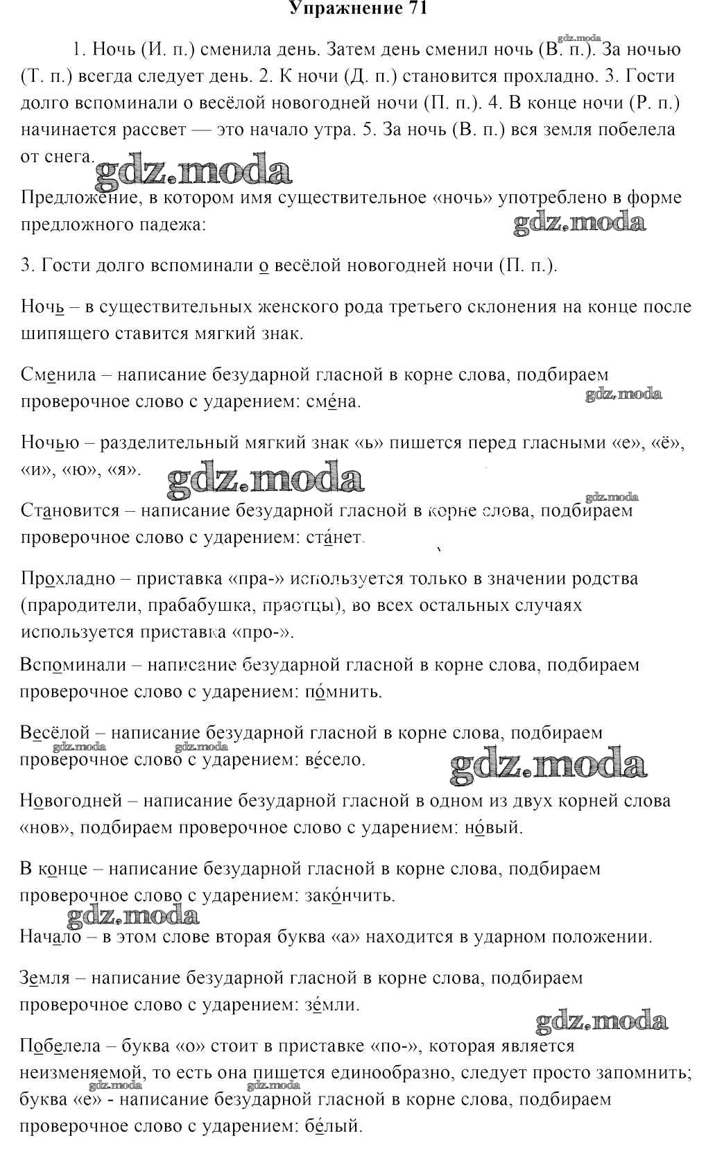 ОТВЕТ на задание № 71 Учебник по Русскому языку 4 класс Антипова
