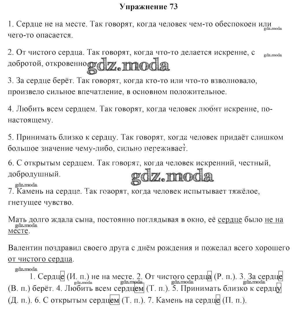 ГДЗ решение к заданию № 73 Русский язык 4 класс Антипова М. Б. Национальный институт образования 2018 Часть 1, Часть 2 ФГОС бесплатно на гдз.мода!