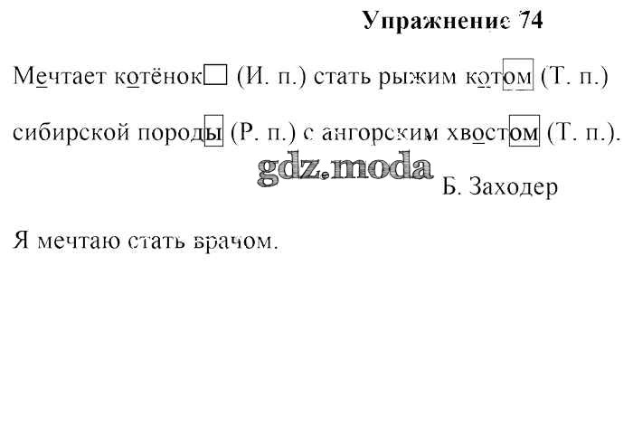 ГДЗ решение к заданию № 74 Русский язык 4 класс Антипова М. Б. Национальный институт образования 2018 Часть 1, Часть 2 ФГОС бесплатно на гдз.мода!