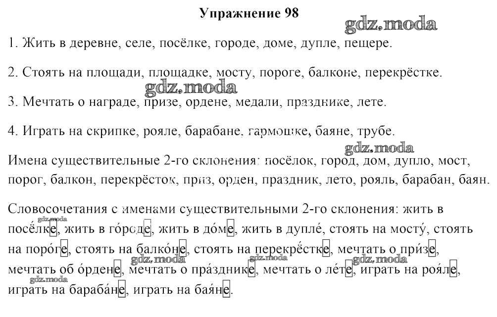 ОТВЕТ на задание № 98 Учебник по Русскому языку 4 класс Антипова