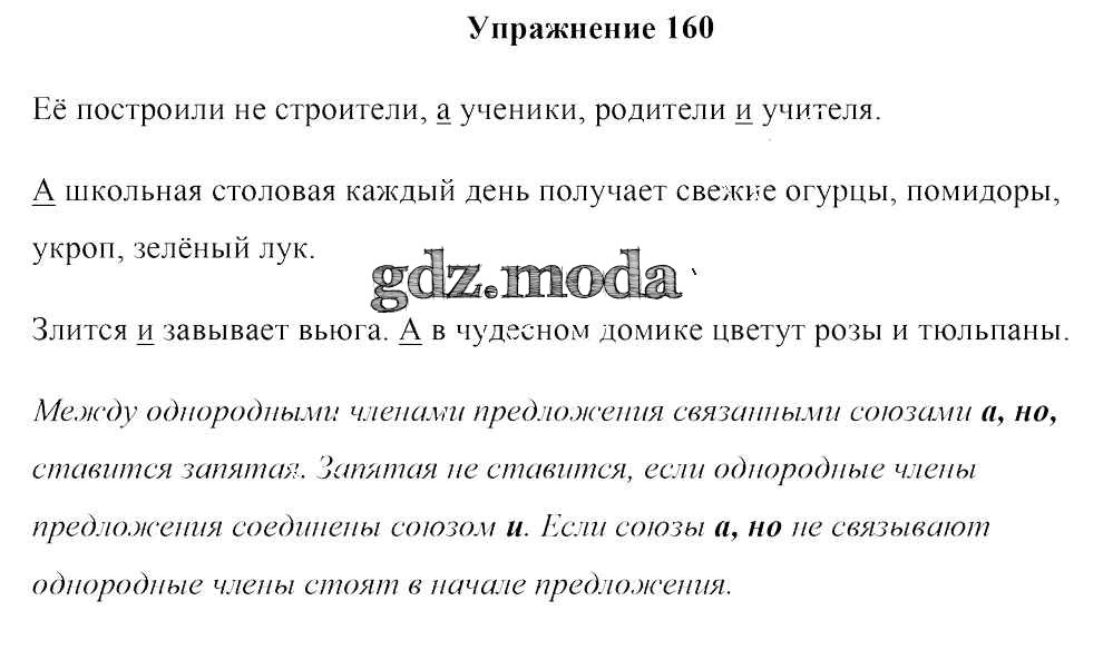 ОТВЕТ на задание № 160 Учебник по Русскому языку 4 класс Антипова