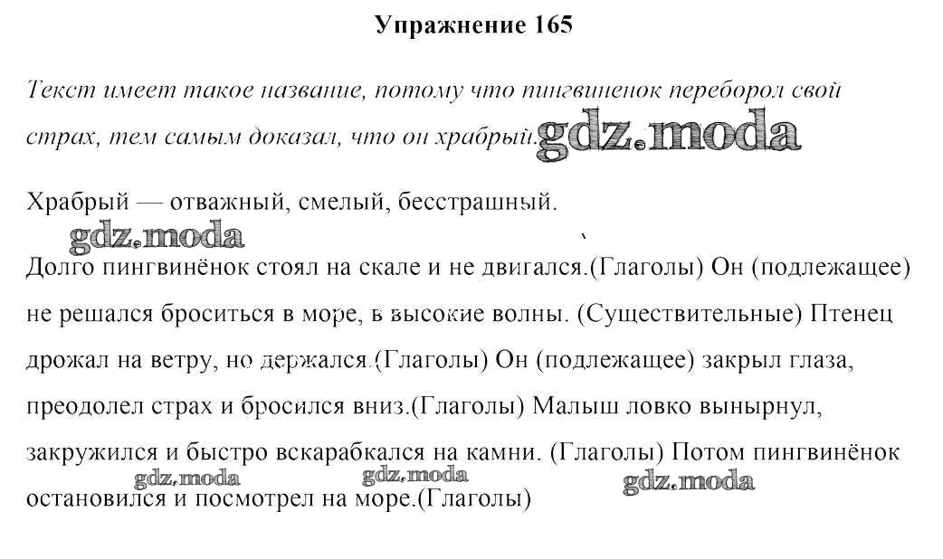 ОТВЕТ на задание № 165 Учебник по Русскому языку 4 класс Антипова