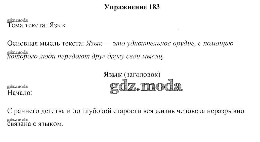 ОТВЕТ на задание № 183 Учебник по Русскому языку 4 класс Антипова