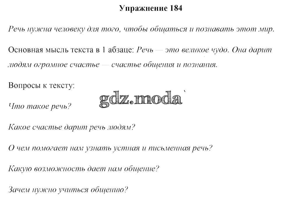 ОТВЕТ на задание № 184 Учебник по Русскому языку 4 класс Антипова