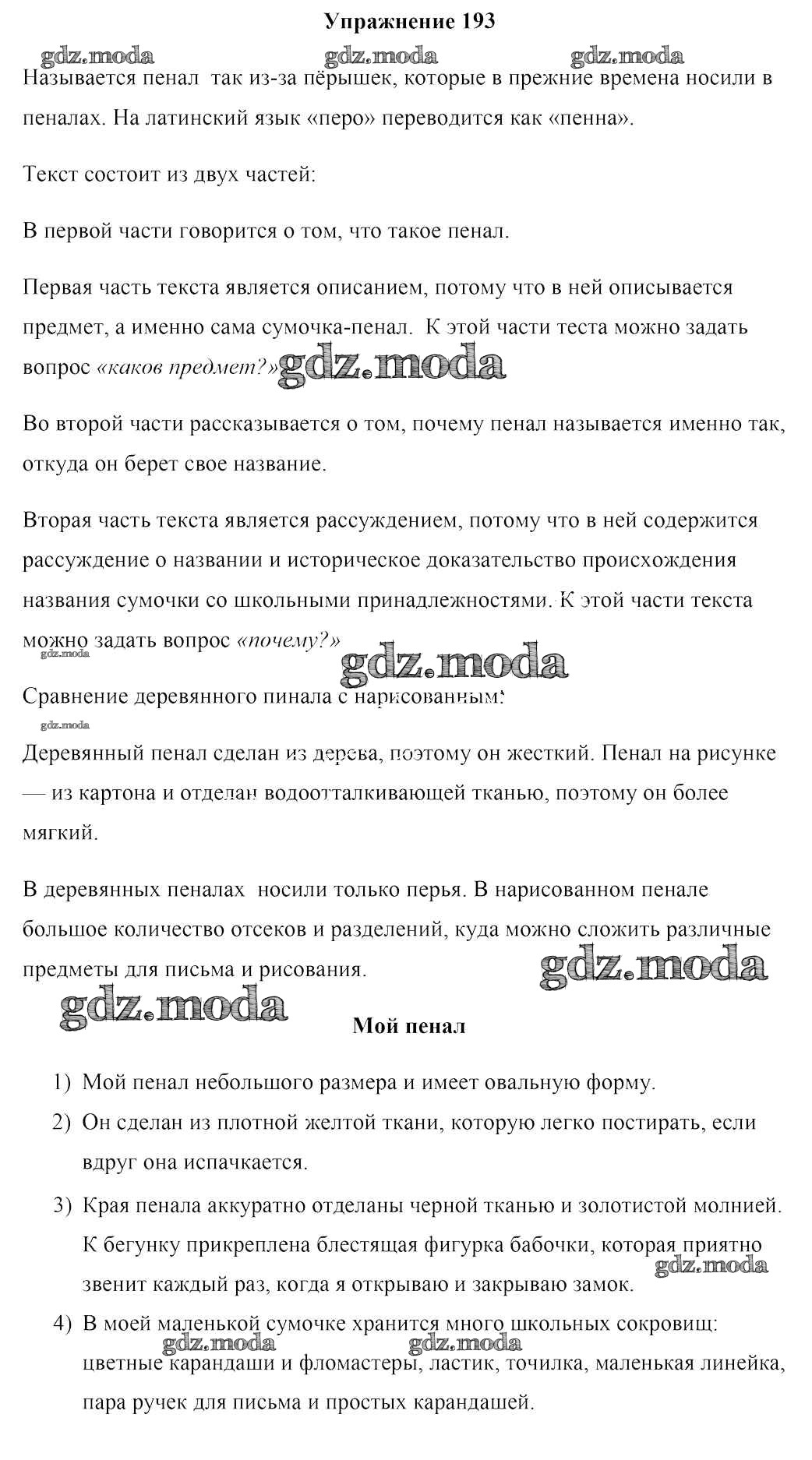 ОТВЕТ на задание № 193 Учебник по Русскому языку 4 класс Антипова