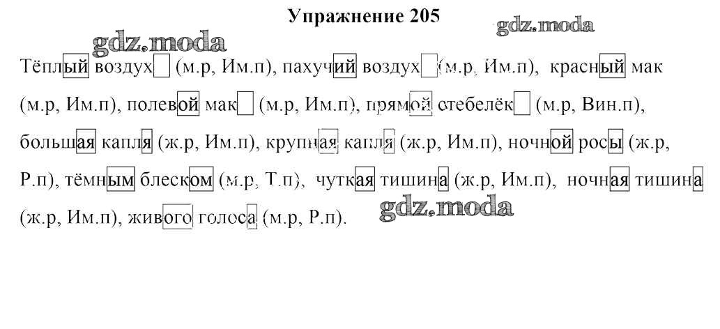 ОТВЕТ на задание № 205 Учебник по Русскому языку 4 класс Антипова